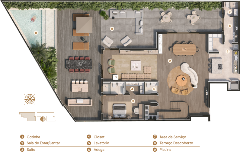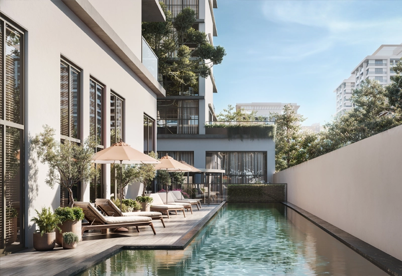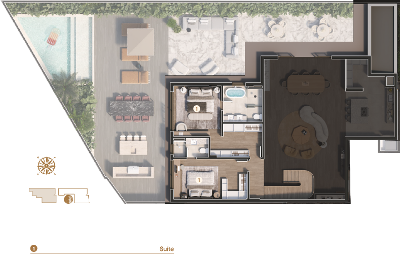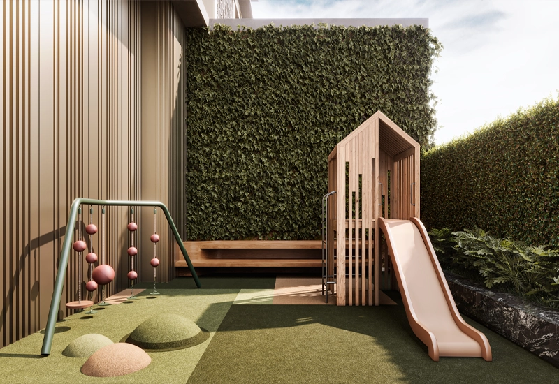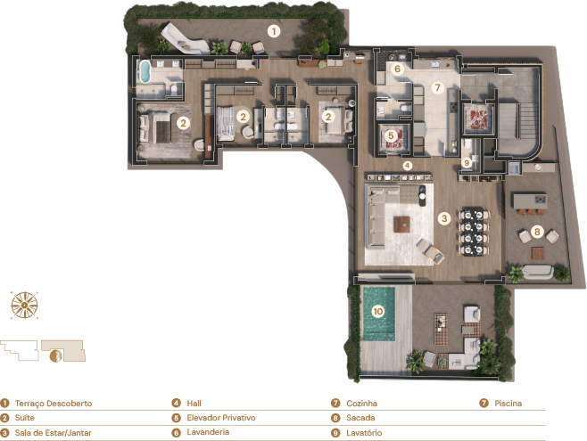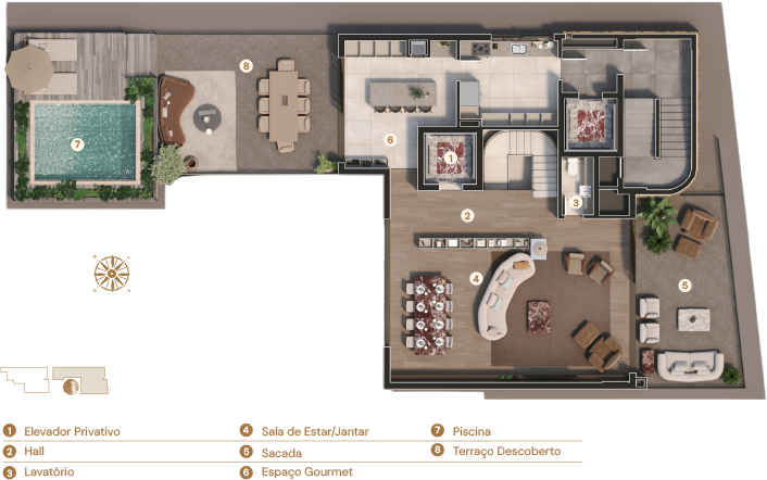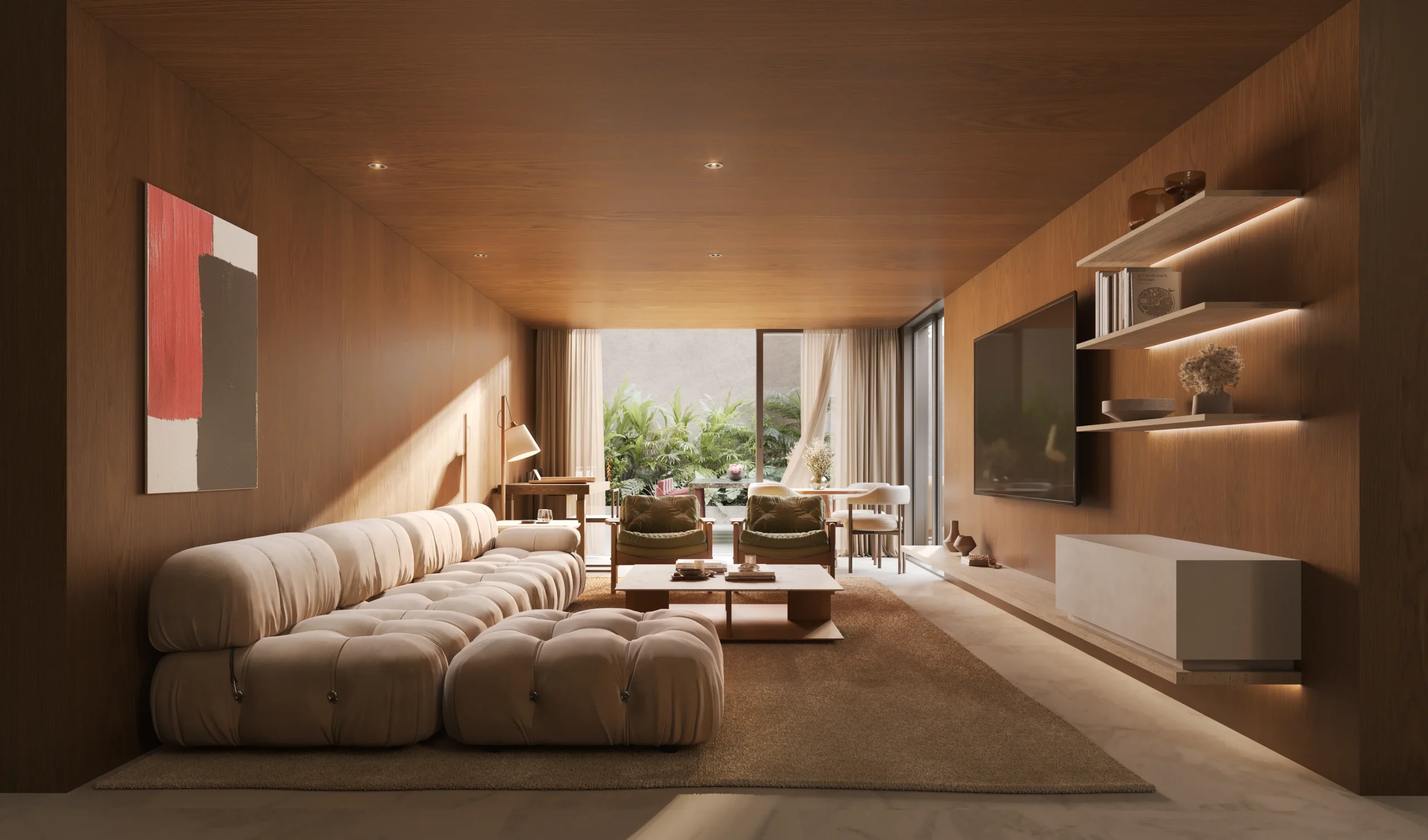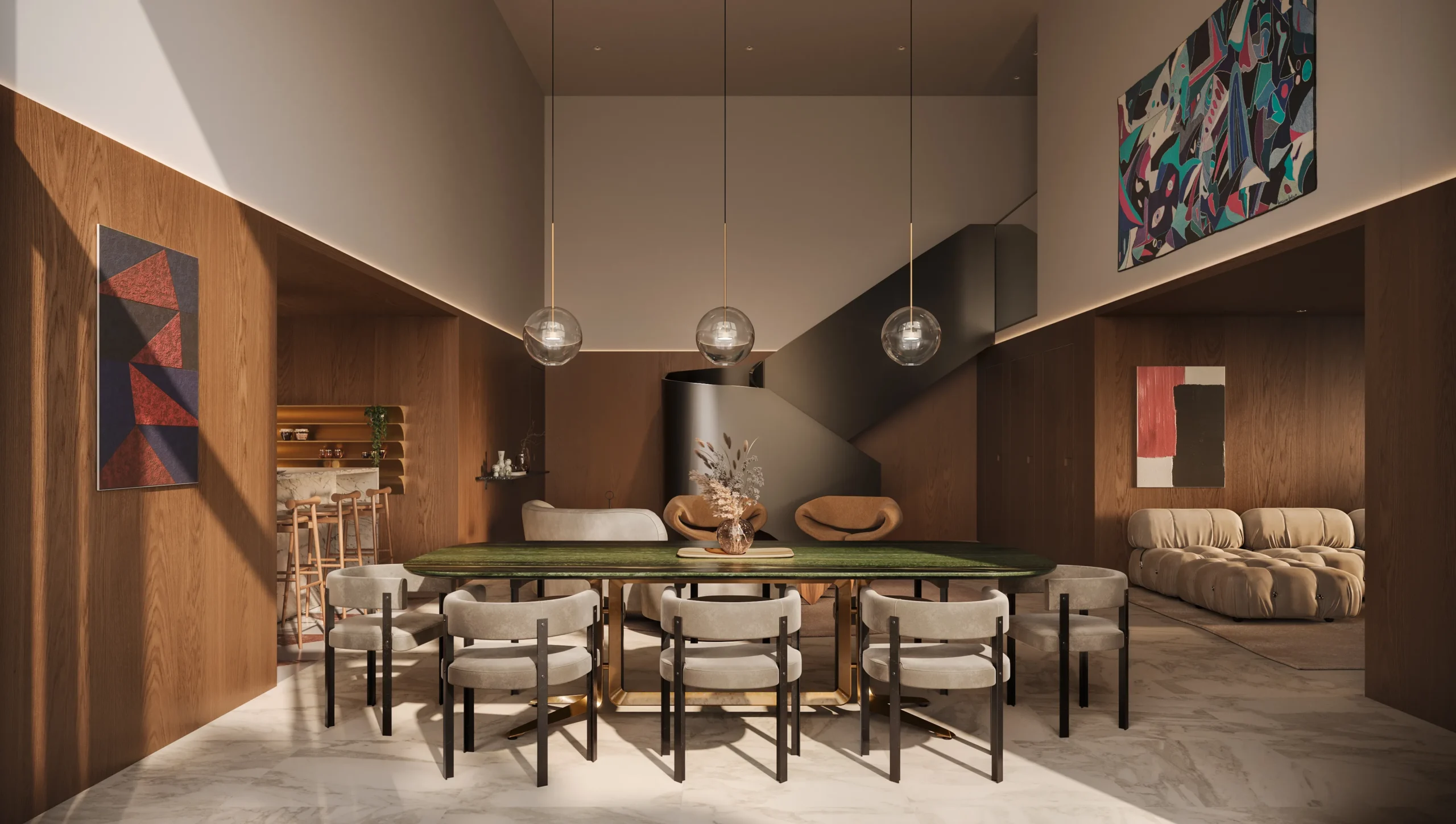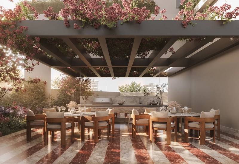 As áreas comuns integram convivência e privacidade, criando uma sensação de exclusividade tranquila, em que o conforto se expressa de forma simples e sofisticada.